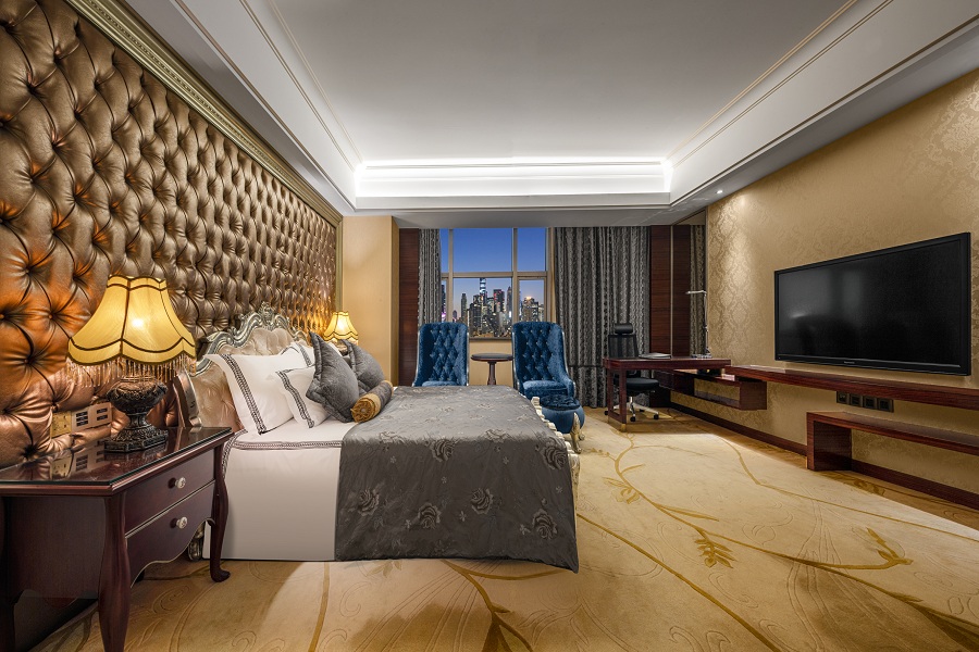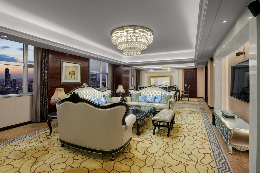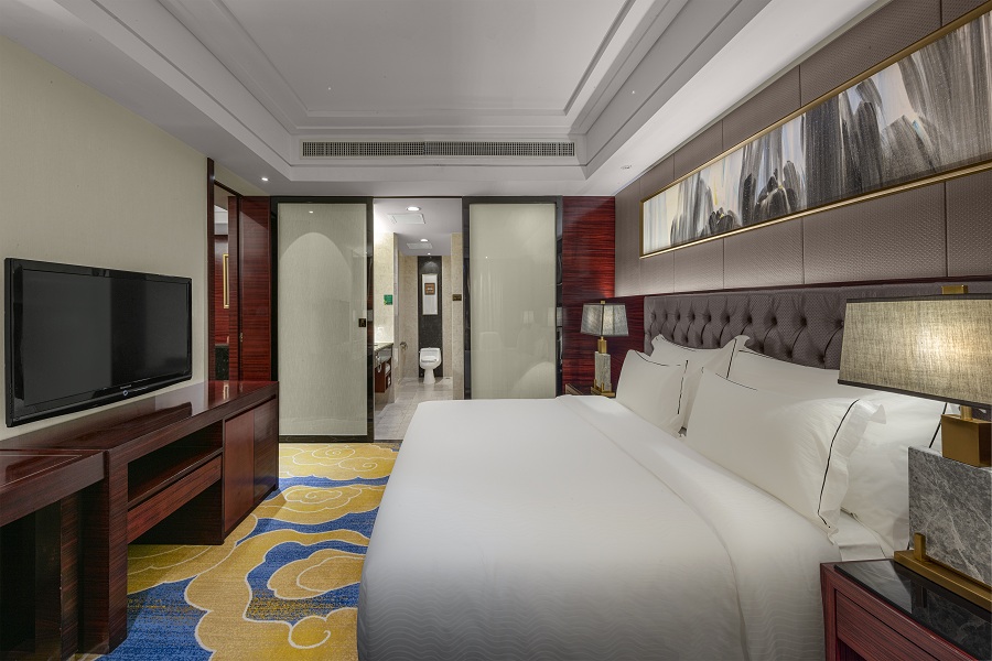 酒店拥有不同种类、风格各异、装修时尚高雅的健康睡眠客房280间,所有房间都配有国际、国内卫视电视频道、国内国际直拨电话、高速宽带上网接口、免费无线WiFi、迷你酒柜、私人保险柜、科勒洁具、直饮水、慕思健康床垫、鹅绒被、香薰睡眠枕……让您享受舒适与便捷,保证你有高品质的睡眠,绝对物超所值。酒店豪华套房庄重高雅,雍容绚丽,提供24小时贴身管家服务,尽显您尊贵的身份和超群的品味。