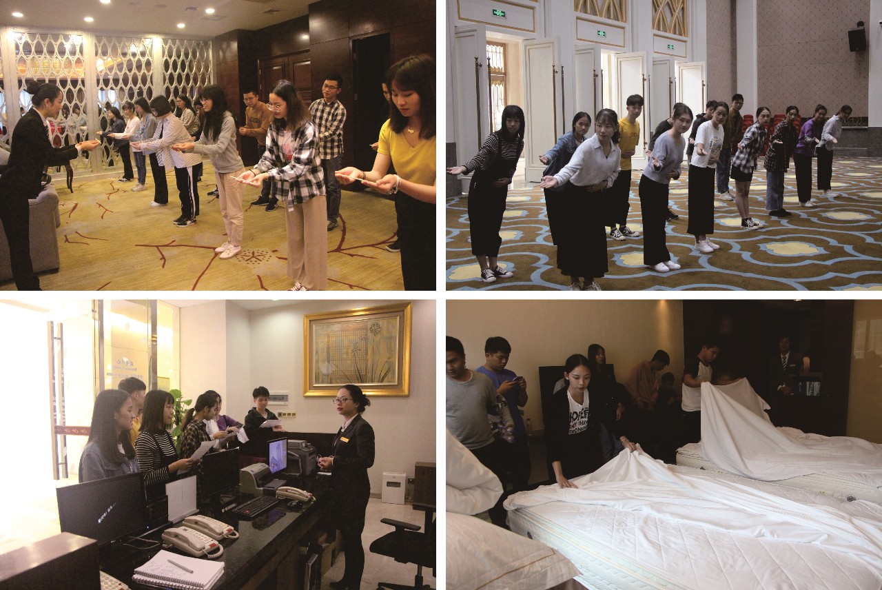 此次社会实践学习内容丰富,知识面广,涉及前厅、客房、餐饮、市场营销等部门知识的学习,酒店安排了部门经理对相关实践课程进行讲解、演示及实操授课,通过讲解、演示与实操实现理论联系实际,同时增强学生的动手能力,加深学生对该岗位业务知识及技能的理解。在实操授课环节,学生们求知若渴、思维活跃,对不懂的问题都能够大胆提问和主动参与实操作业,虽然业务技能还比较生疏,但通过本次实践学习,学生身上那股好学的干劲,相信将在不久的实习期阶段,他们一定会在各自的岗位上发光发热,实现自己的人生价值。