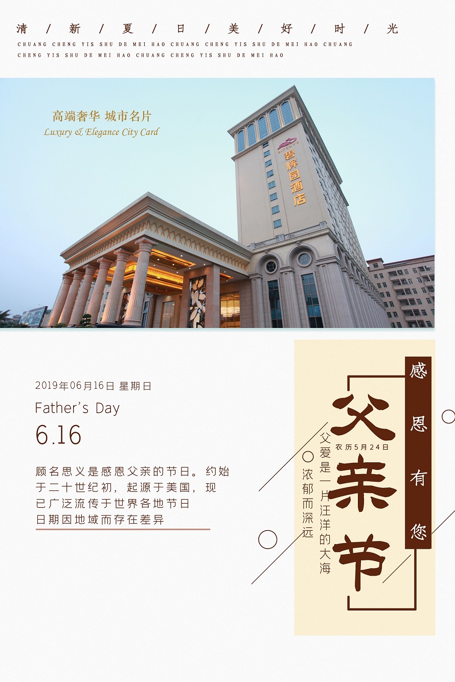 有一个词语最亲切,有一声呼唤最动听,有一个人最要感谢,有一种人最应感恩。他就是——“父亲”。父亲的爱,全心全意不求回报;父亲的爱,有始无终不减分毫;父亲的爱,博大宽广善良美好;父亲的爱,相伴此生贵如珍宝。不论微笑还是气恼,父亲的爱不曾减少; 不论咫尺还是天涯,父亲的爱一直围绕。如今父亲节喜盈门,祝福父亲节日快乐!