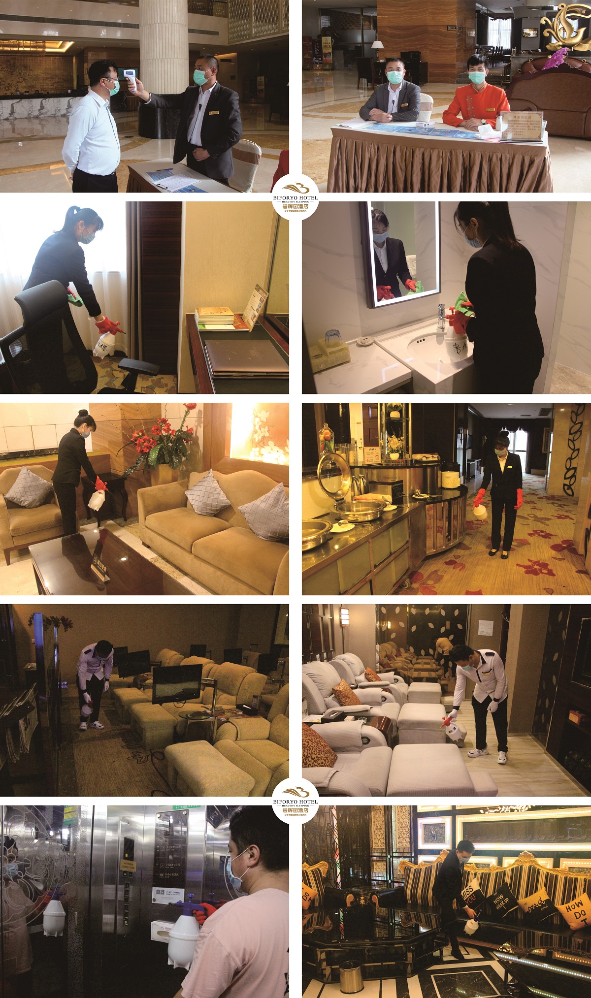 ◆ 客用区域的电梯处/门把手进行定时消毒。
